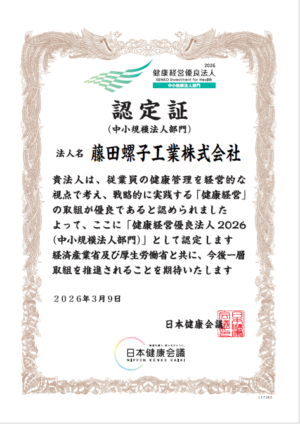3月9日に経済産業省と日本健康会議が共同で実施する「健康経営優良法人認定制度」において、健康経営に優れた企業として、2年連続で「健康経営優良法人2026(中小規模法人部門)」に認定されました。